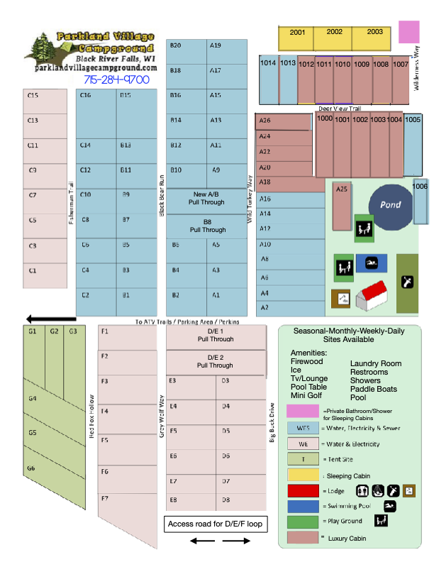 We have a few full hook up seasonal sites available for the 2026 season! These are $2890 for the entire season! Don't miss your chance to become a seasonal camper at Parkland Village Campground with full access to all our amenities and direct access to the Jackson County Trails! Call now to inquire!
